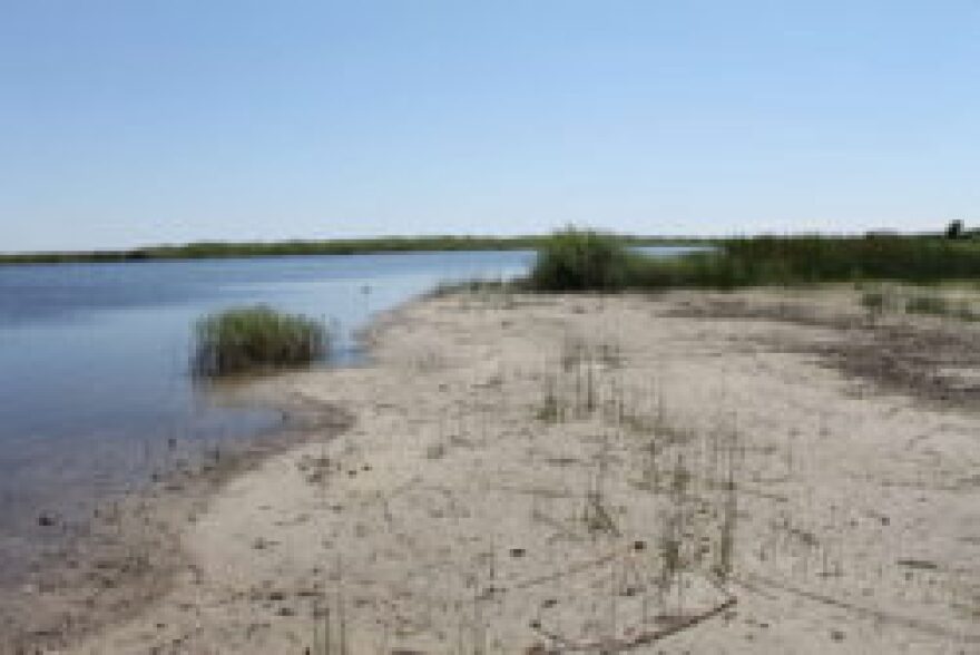 Back at Lake Okeechobee sparse patches of grass shoot up from the sandy beach. Paul Gray says the marsh should be thick and lush.