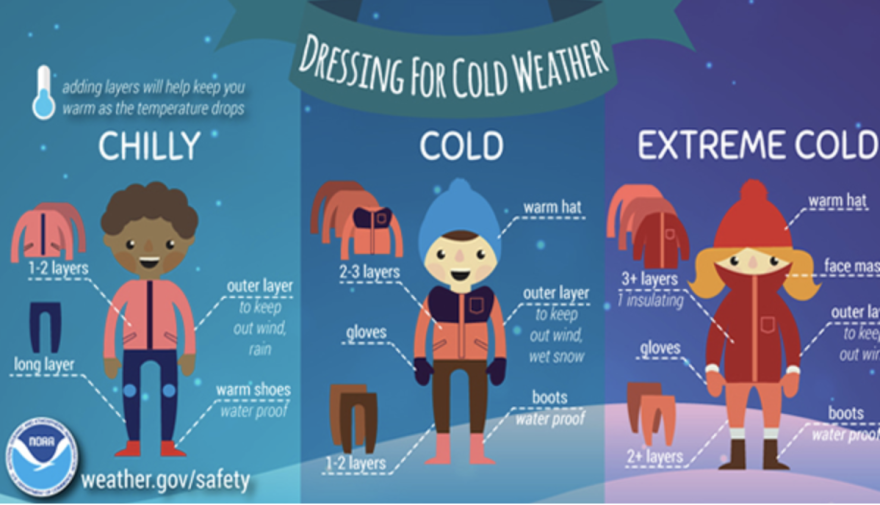 Protect People: Remember to dress in layers and wear a hat and gloves. It is important to try to stay out of the wind and to stay dry.